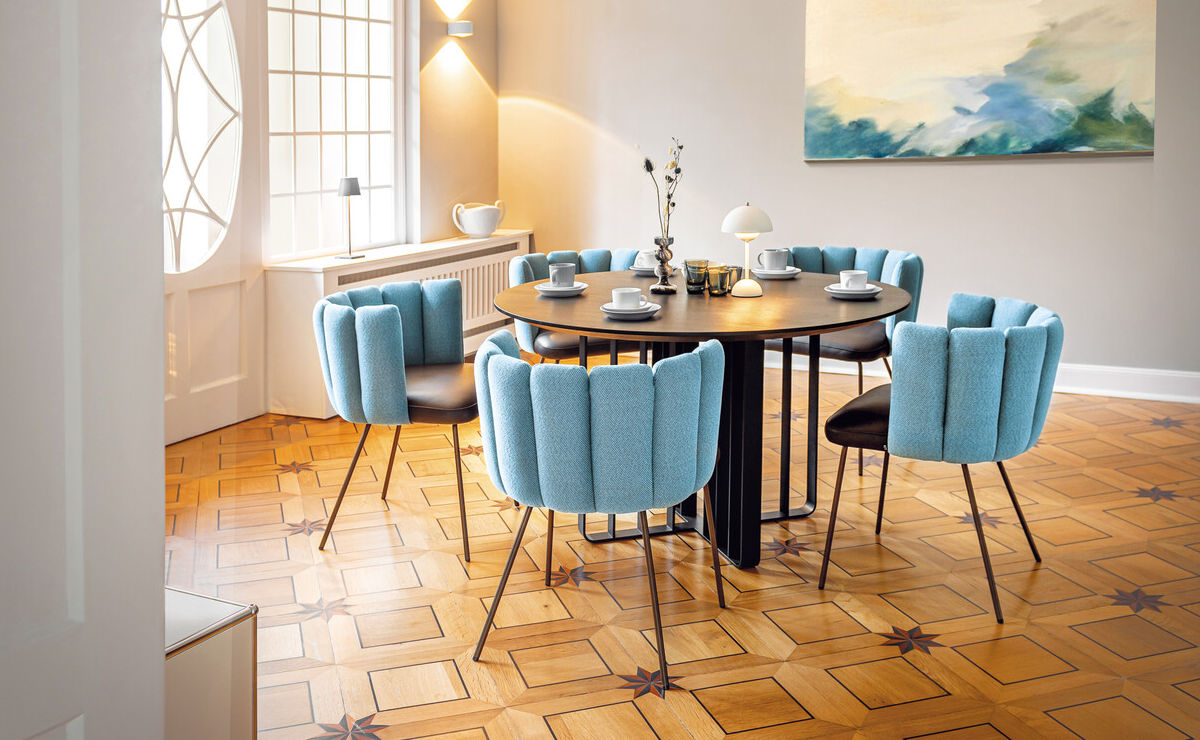 Auszügen, ergonomisch durchdachte Stühle und Bänke für erstklassigen Sitzkomfort. Funktionelle Anrichten, Vitrinen und Beimöbel