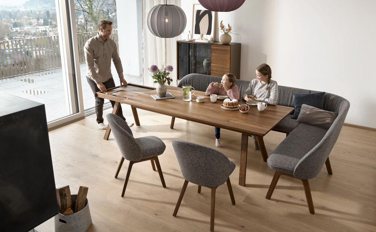 Hülsta, Team7, Form Exclusiv, Scholtissek, Kettnaker, Anrei, Sitzbank, Esstisch, Auszugtisch, Stühle, Freischwinger, Armlehnstühle, Armlehnsessel, Tisch mit Ansteckplatte, Vitrine, Highboard, Holztisch, Massivholz-Tisch, Essgruppe, Schwingstuhl, Barhocker, Kirsche, Nussbaum, Eiche, Eckbank, ausziehbar, erweiterbar, Ausziehtisch, Stehtisch, Buffet, Buffetwagen