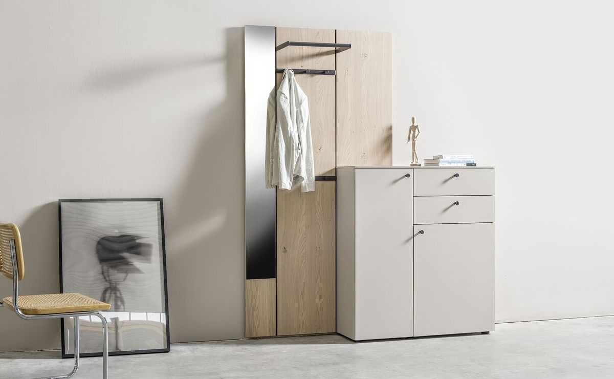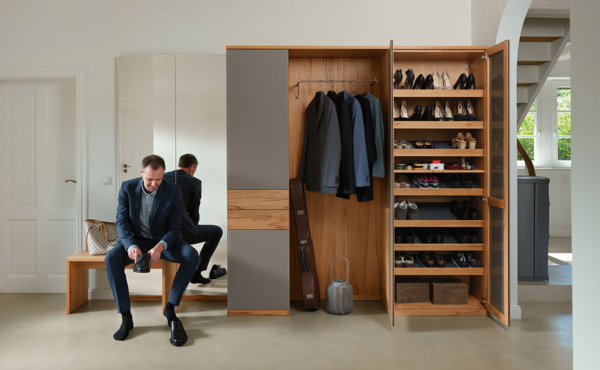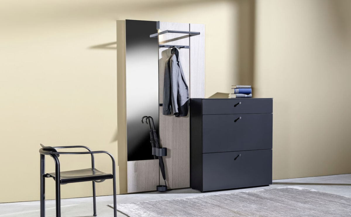 Team7, Sudbrock, Schuhschrank, Garderobenschrank, Garderobe, Spiegelschrank, Dielenmöbel, Flurmöbel, Schuhbank, Hutablage, Kleiderhaken, Kleiderstange, System, Spiegel,